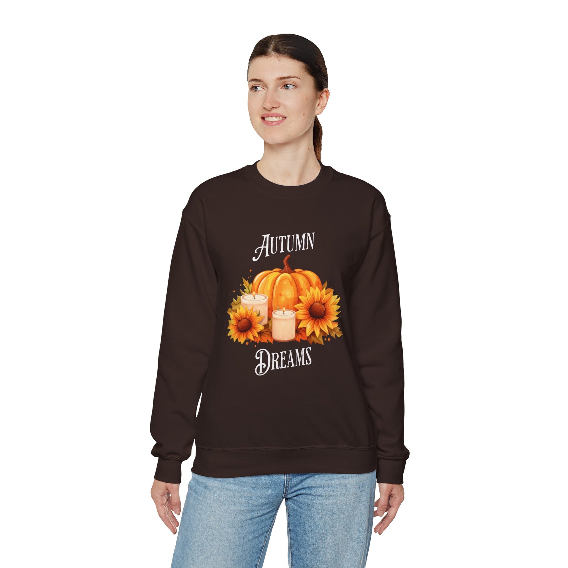 Stay cozy and stylish this fall with the Autumn Dreams Unisex Heavy Blend™ Crewneck Sweatshirt. Made with a soft and warm blend, this sweatshirt is perfect for those chilly autumn days. The playful pumpkin design adds a touch of whimsy to your wardrobe. Treat yourself to comfort and fun with Autumn Dreams!