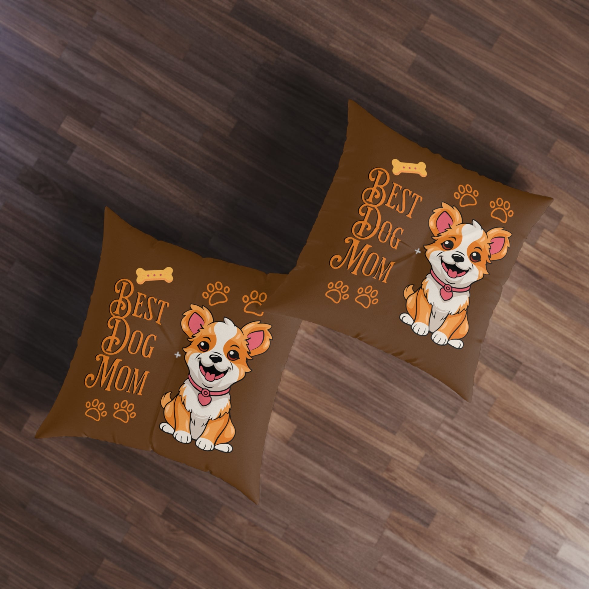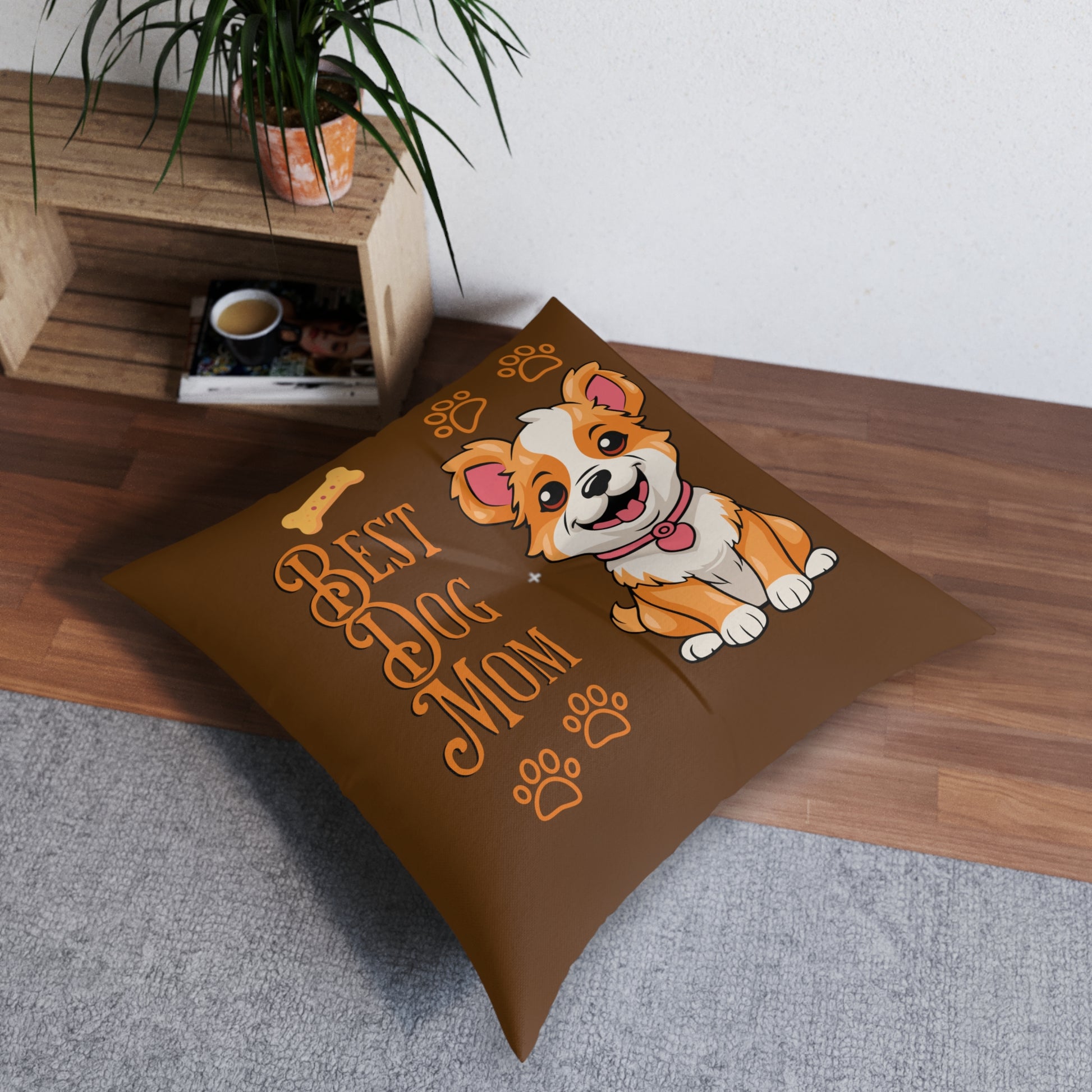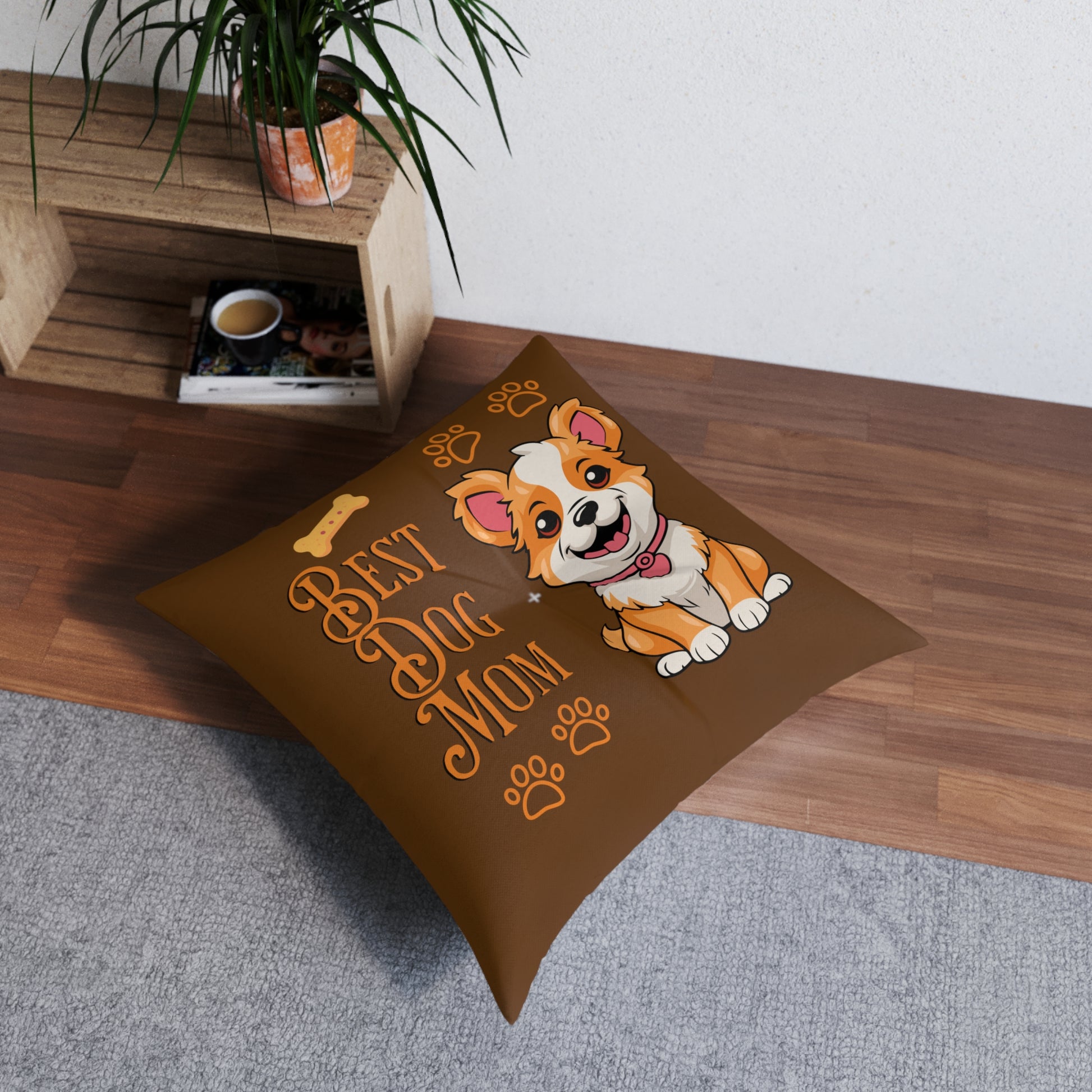 Best Dog Mom Brown Tufted Floor Pillow, Square