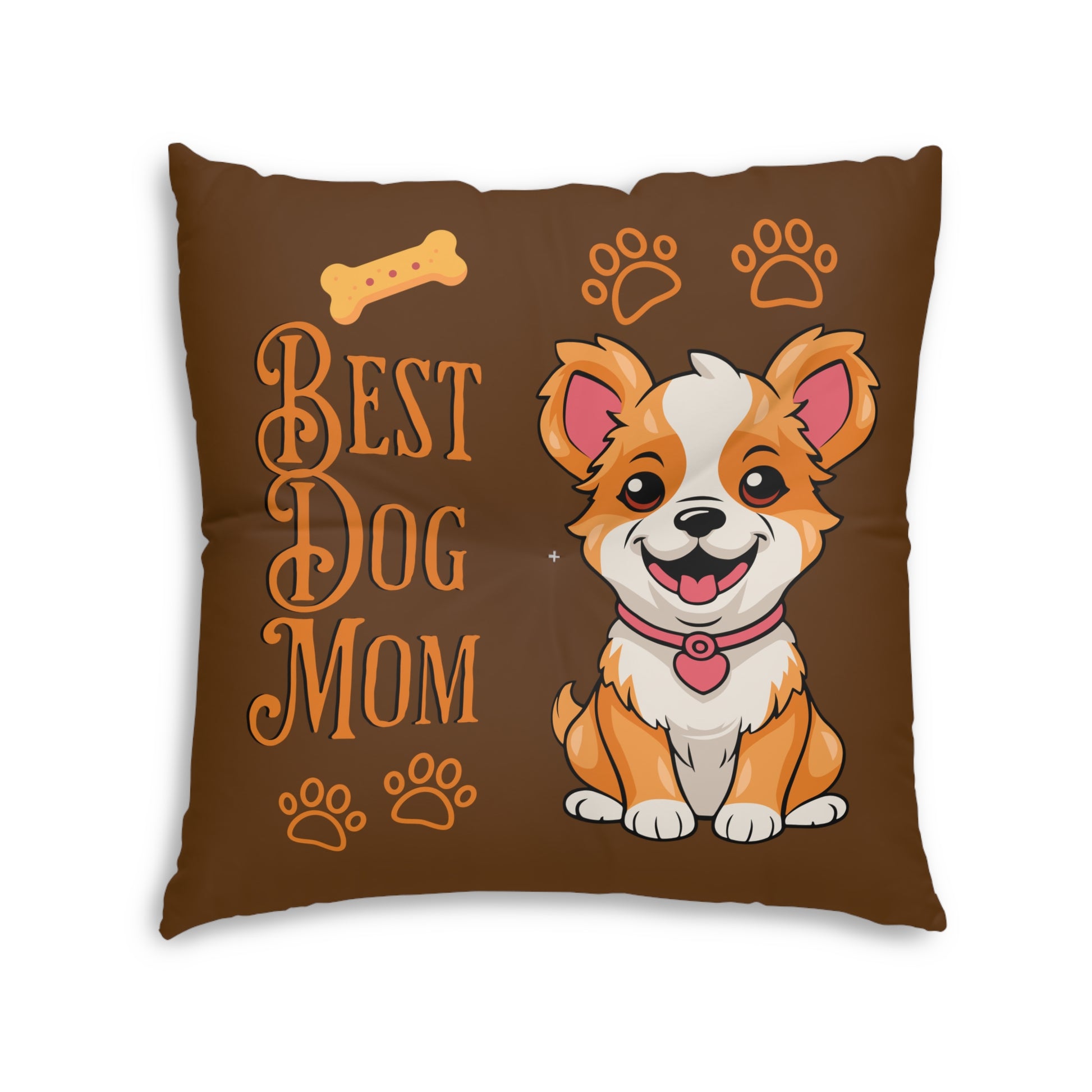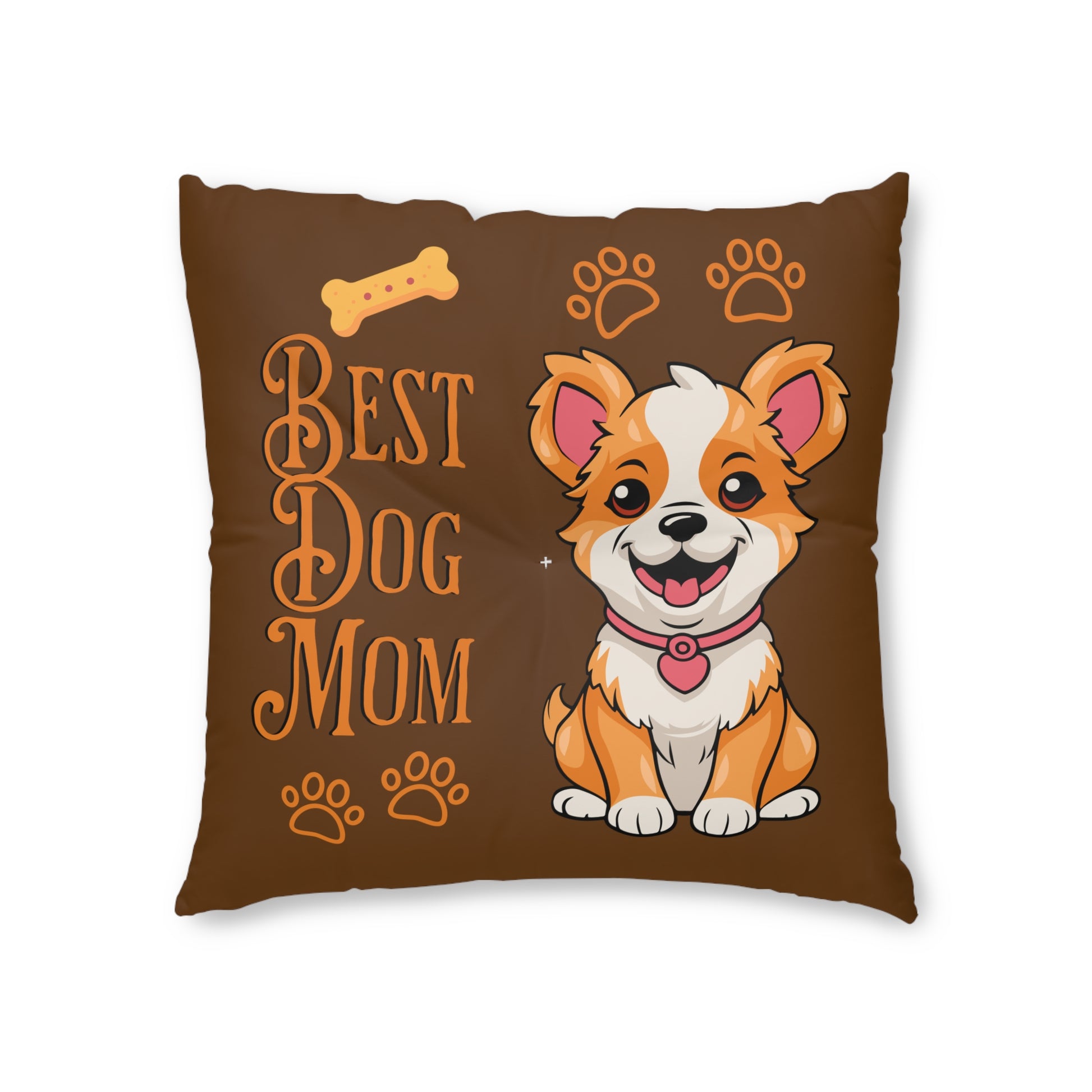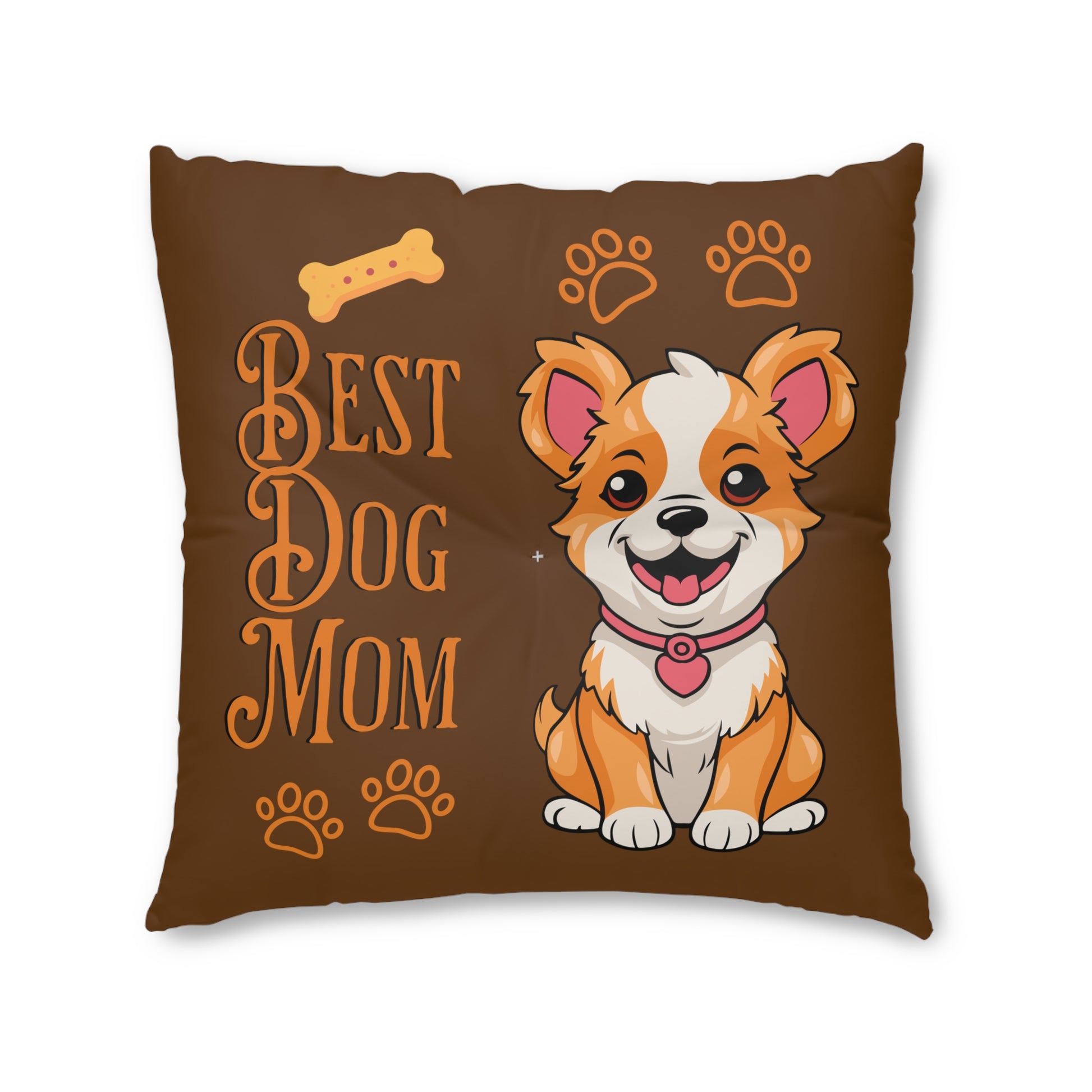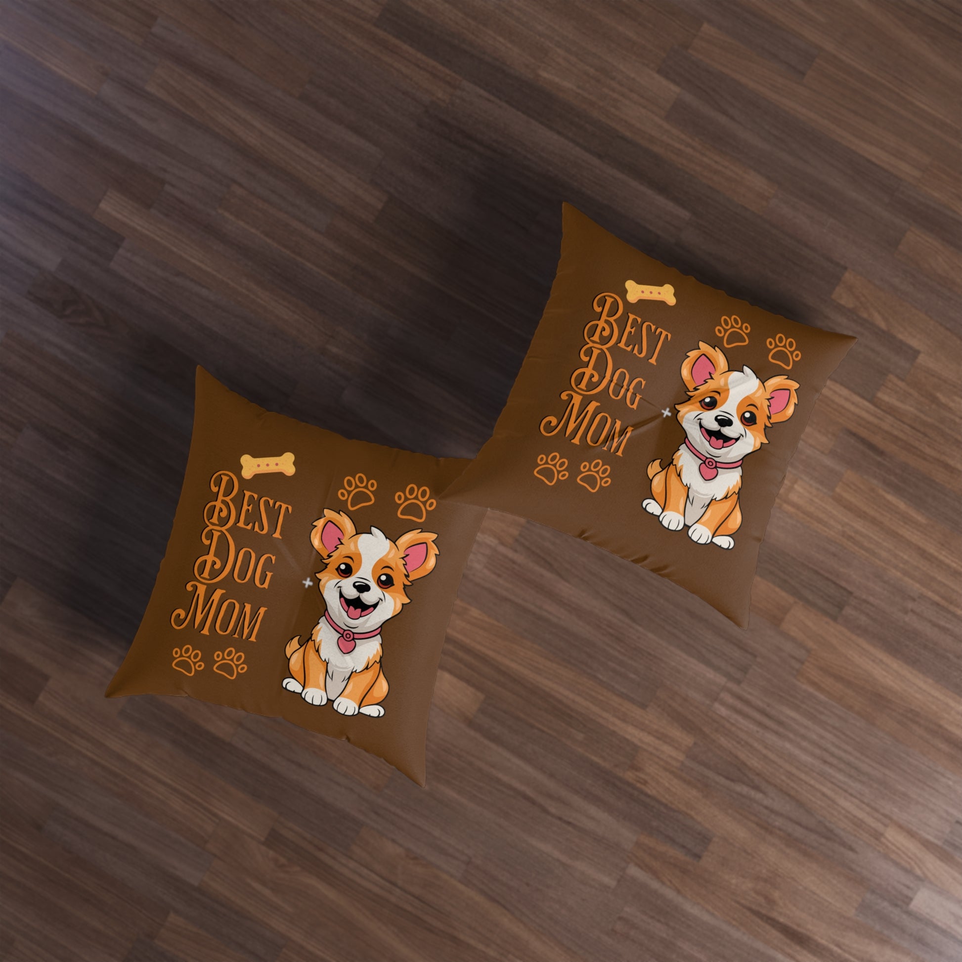 Best Dog Mom Brown Tufted Floor Pillow, Square
