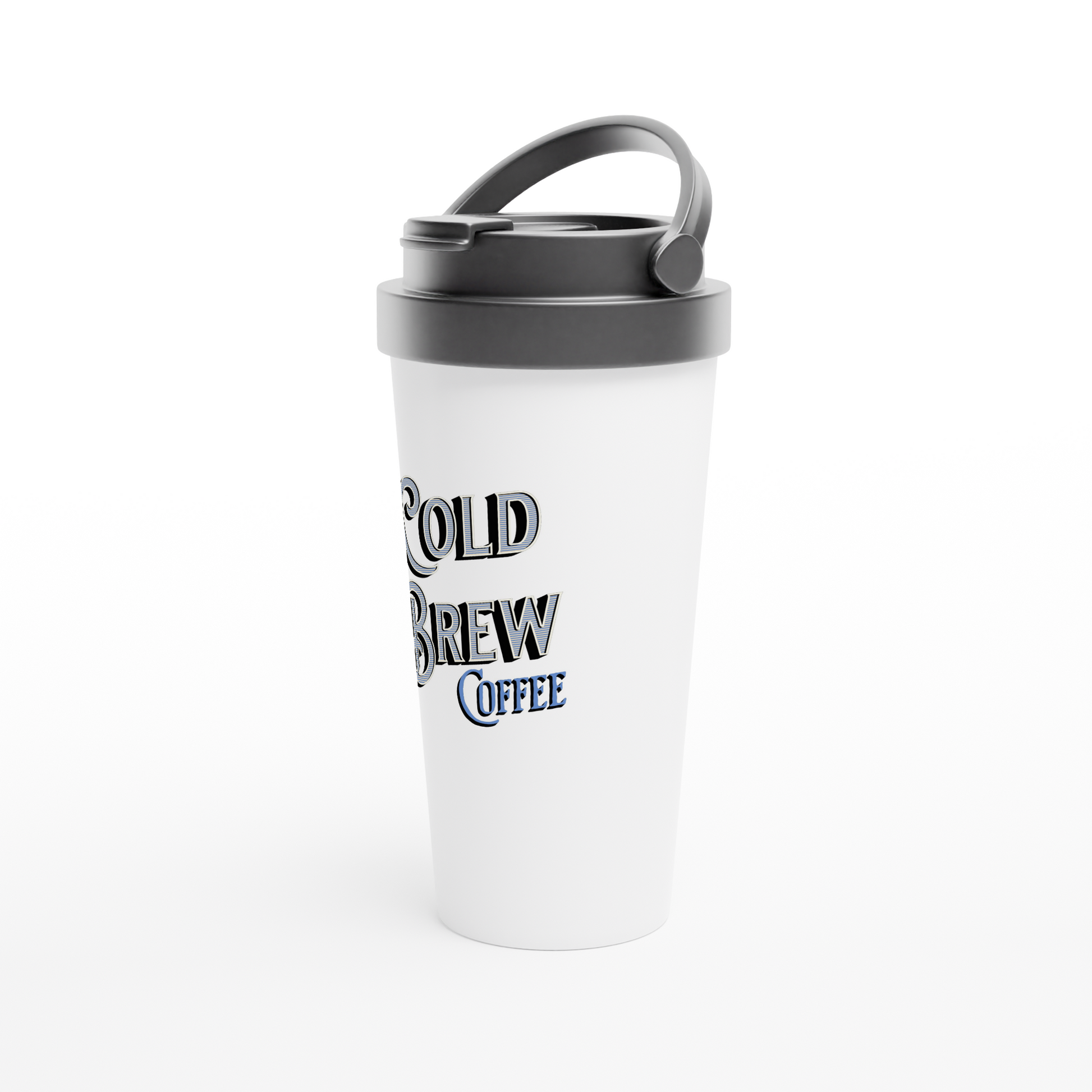 Cold Brew Coffee White 15oz Stainless Steel Travel Mug