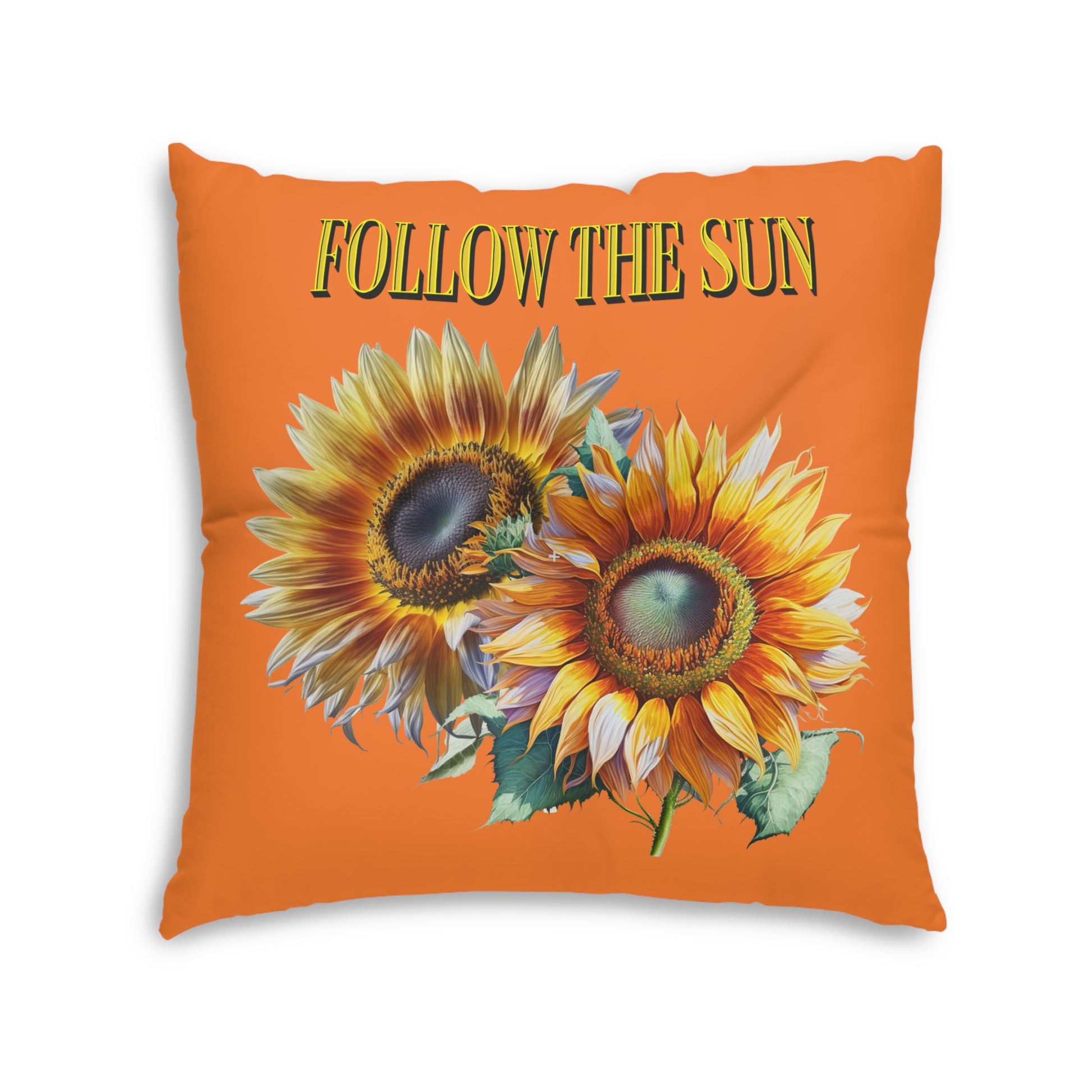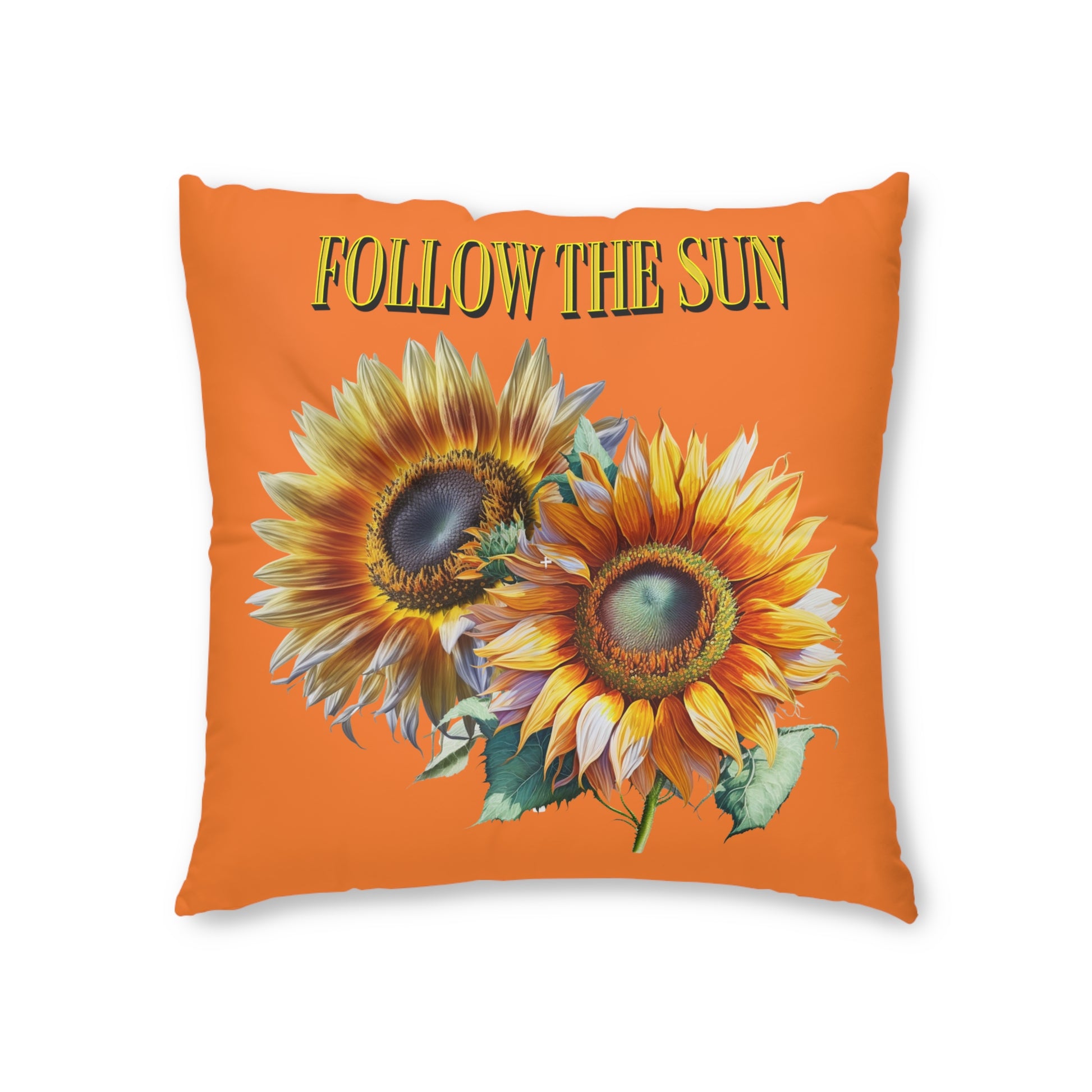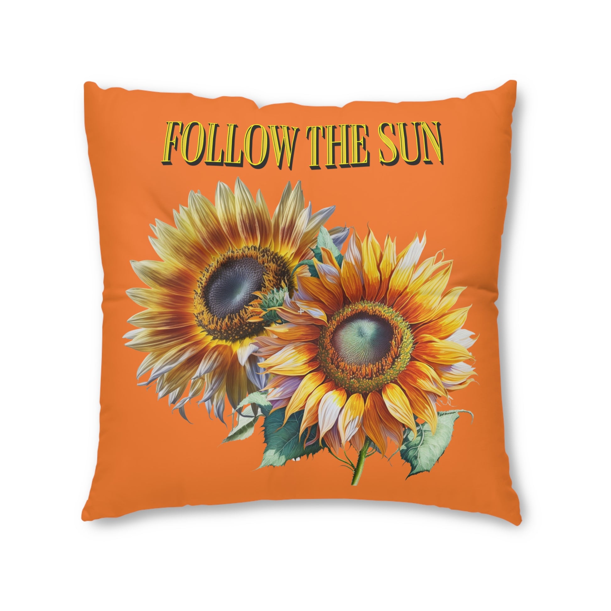 Add a touch of sunshine to your space with our Follow the Sun Orange Tufted Floor Pillow. This playful square pillow features a vibrant sun flower design, bringing the beauty of a garden indoors. Perfect for lounging and adding a pop of color to any room. (Warning: may cause an increase in naps and relaxation!)