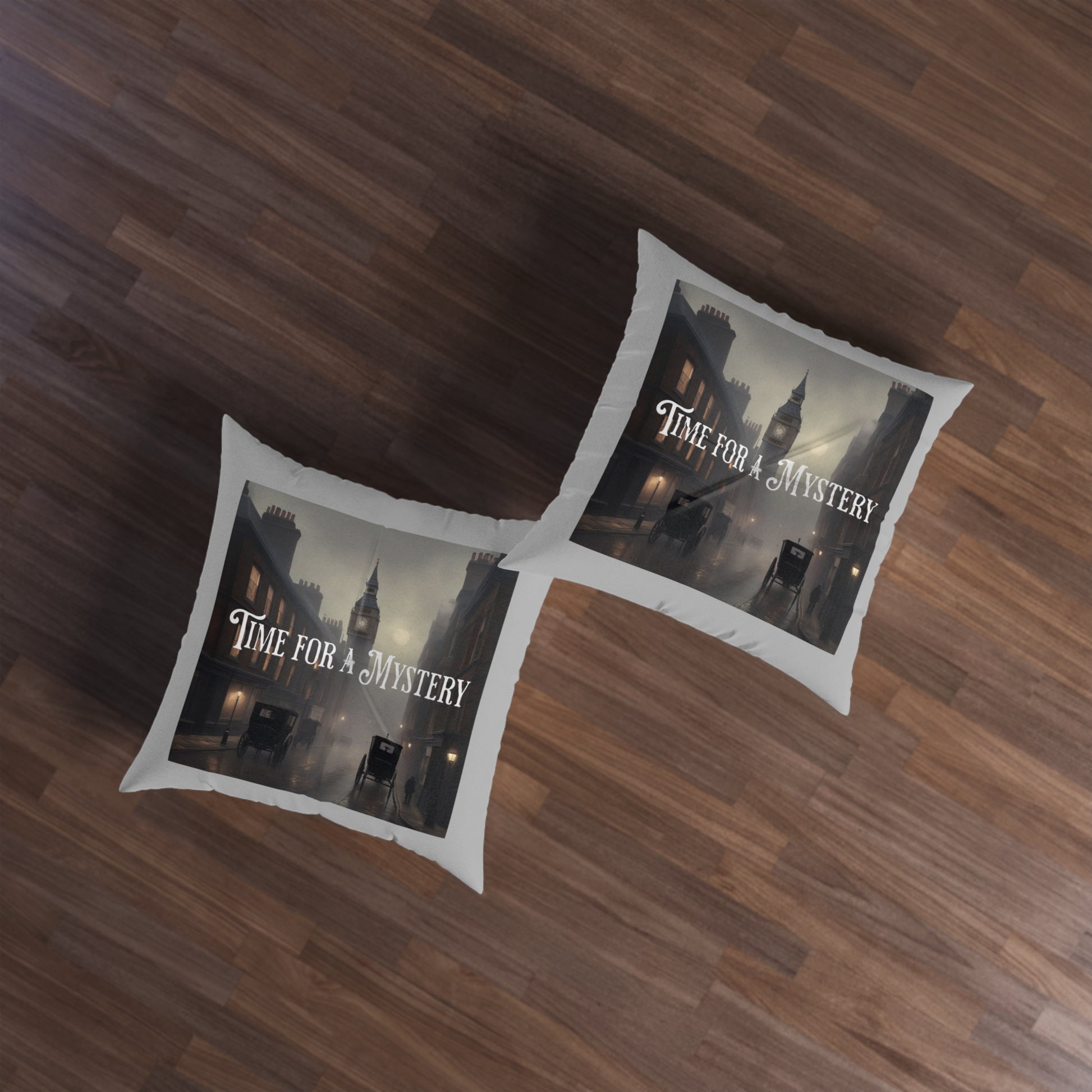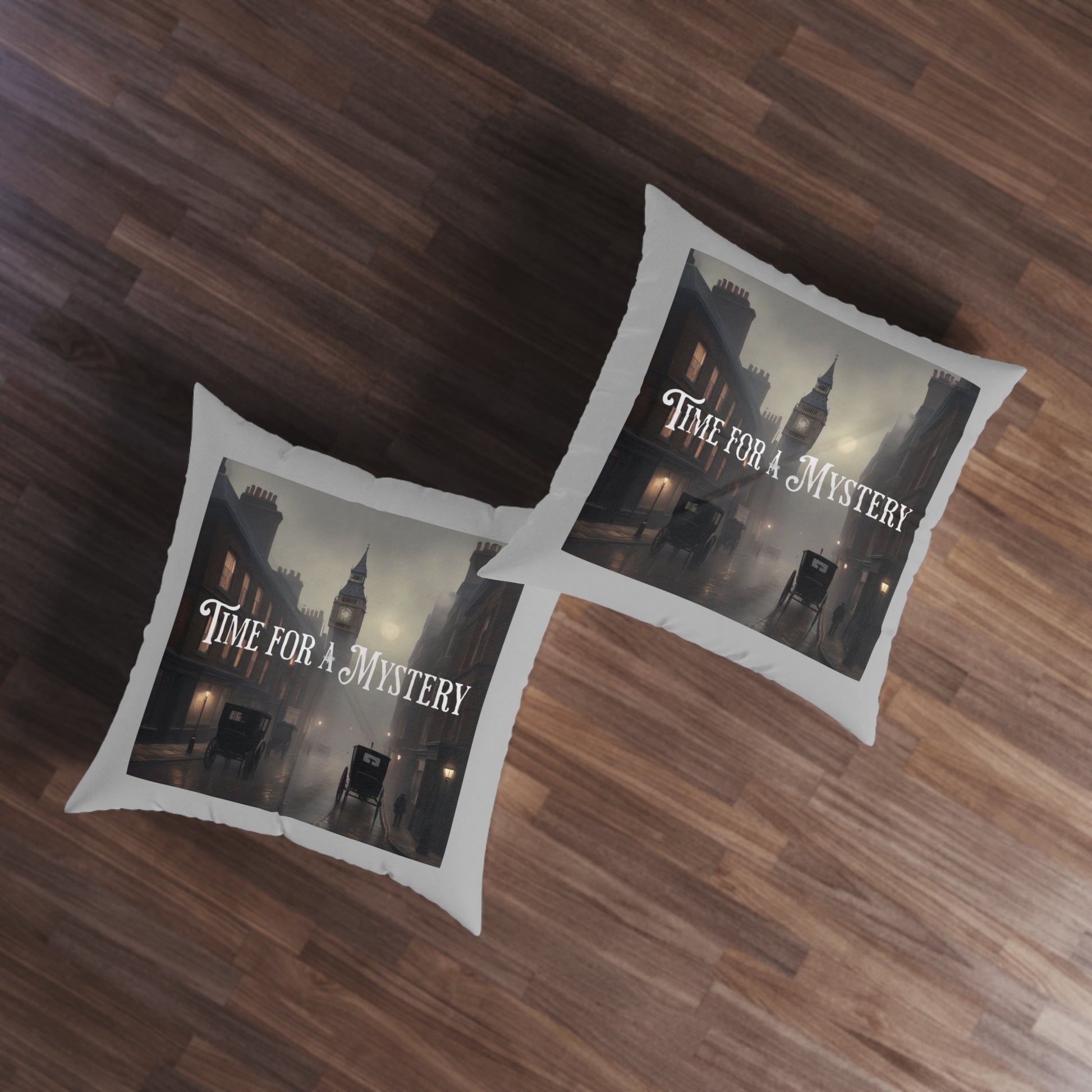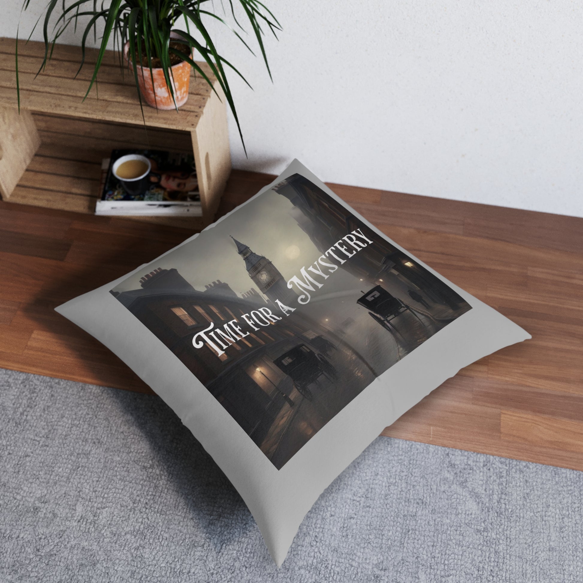 Time for a Mystery Gray Tufted Floor Pillow, Square