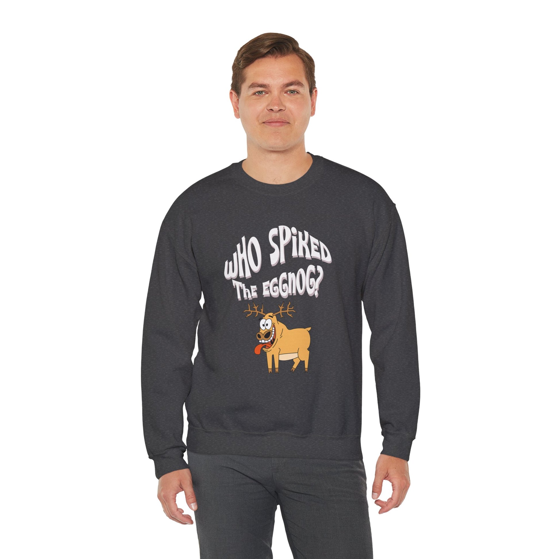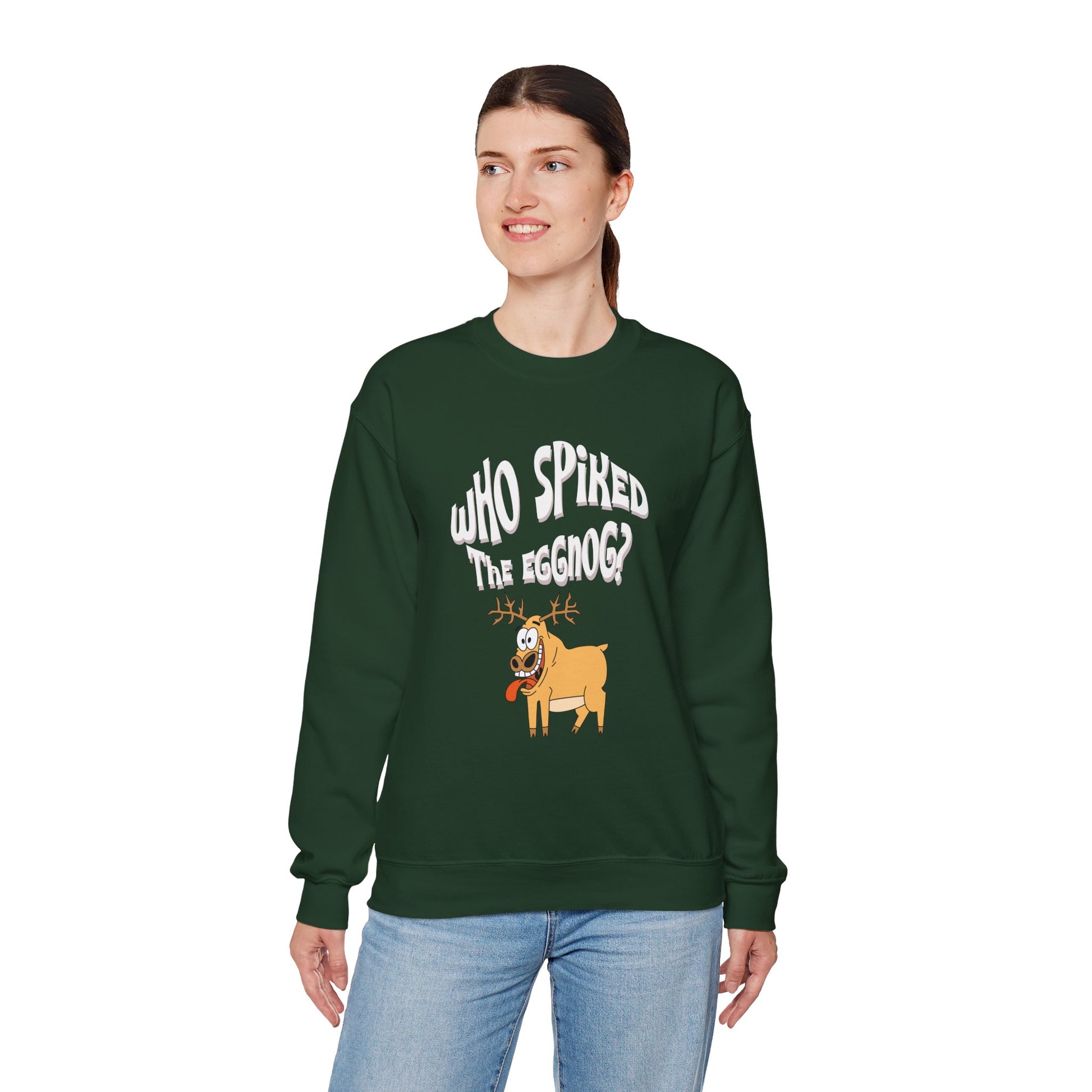 "Who Spiked the Eggnog?" Whimsical Holiday Crewneck Sweatshirt